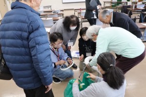 (簡易トイレの組み立てと使用方法を体験)